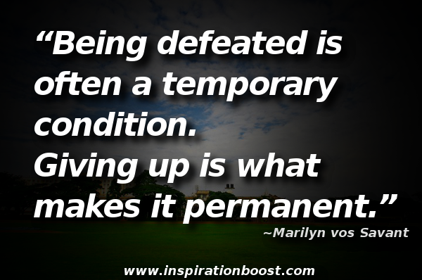 Being defeated is often a temporary condition. Giving up is what makes it permanent. ~Marilyn vos Savant