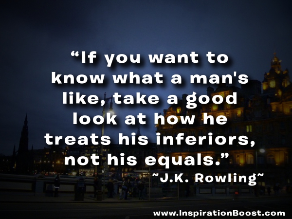 J.K. Rowling Quote 2 Comments / All Quotes, Attitude Quotes / By Darren Chow J.K. Rowling Quote “If you want to know what a man’s like, take a good look at how he treats his inferiors, not his equals.”
