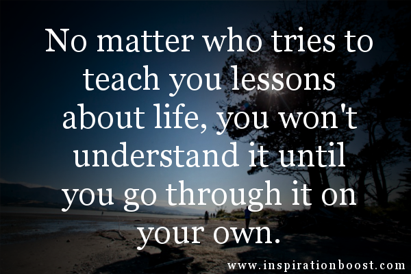 Lessons about Life Leave a Comment / All Quotes, Life Quotes / By Darren Chow No matter who tries to teach you lessons about life, you won’t understand it until you go through it on your own.